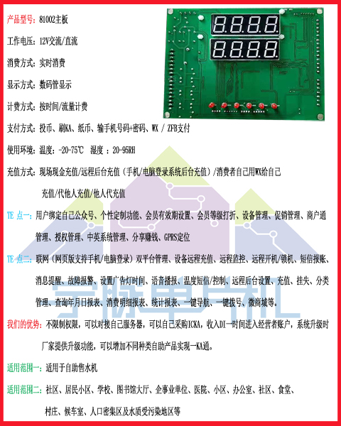 宇脉自助售水机主板厂家 欢迎来电咨询 18520500709/4001898-020